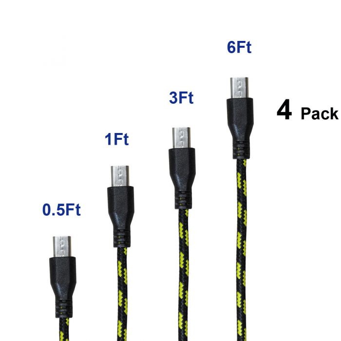 APXX 4-Pack Assorted Length Premium High Speed Nylon Braided USB 2.0 A Male to Micro B Cable U7A4Q