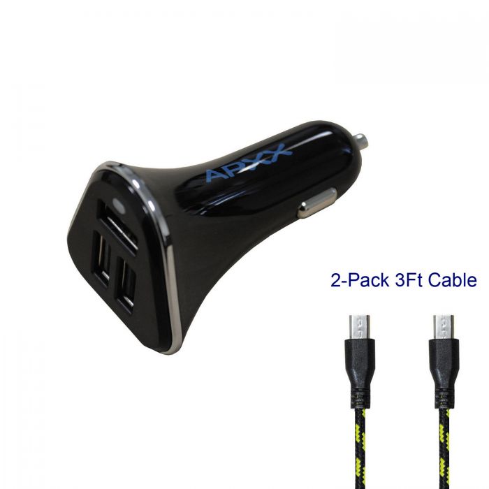 APXX UCA3B-34S 3-port Smart USB Car Charger bundle with 2 Micro USB Cable