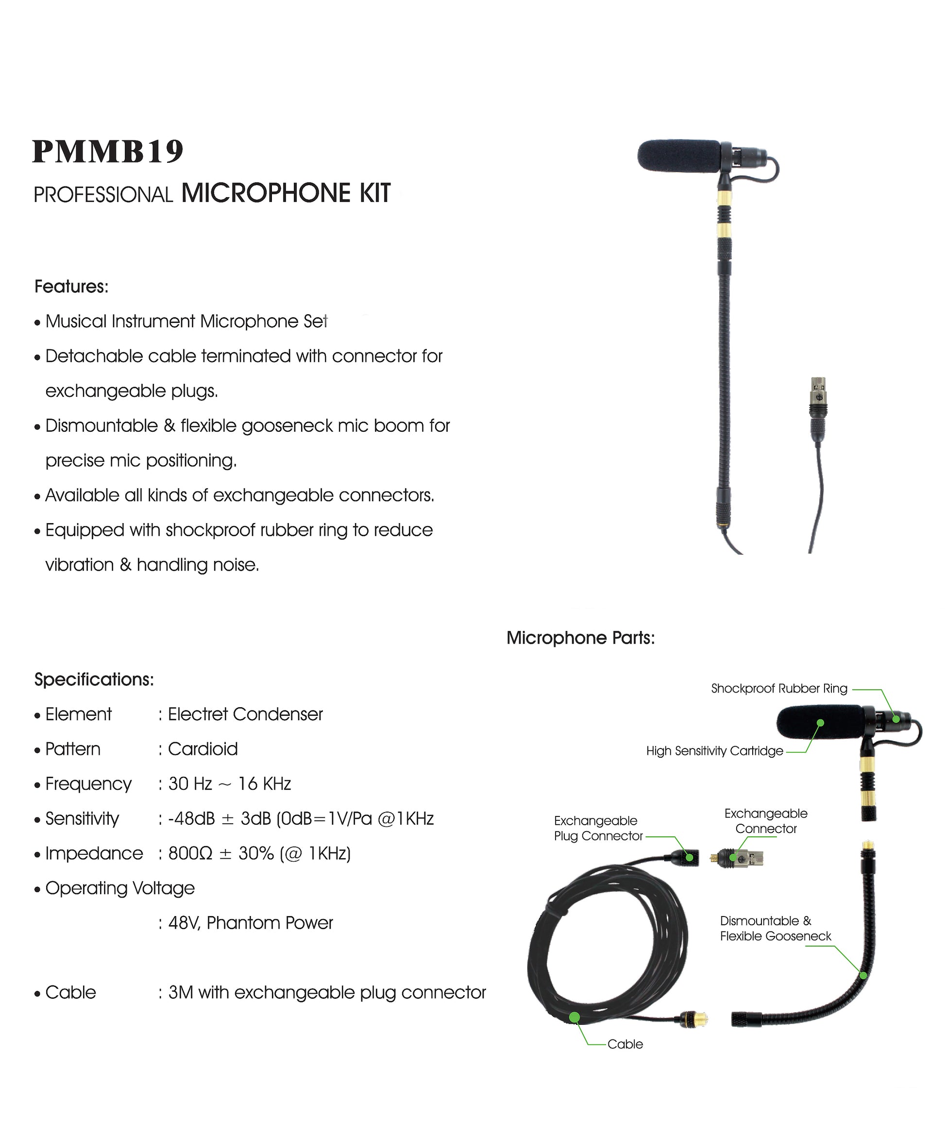 * Operating Voltage: 1.5V- 10V D.C. or 48V Phantom Power