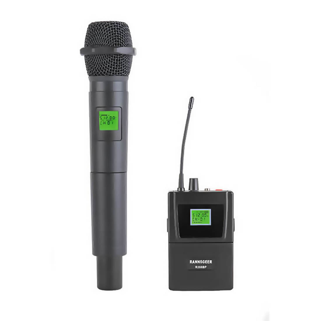 Rannsgeer UHF R288H1HS3 4-Channel Wireless Microphone Combo System w/ 1 Handheld & 3 Headset Mic
