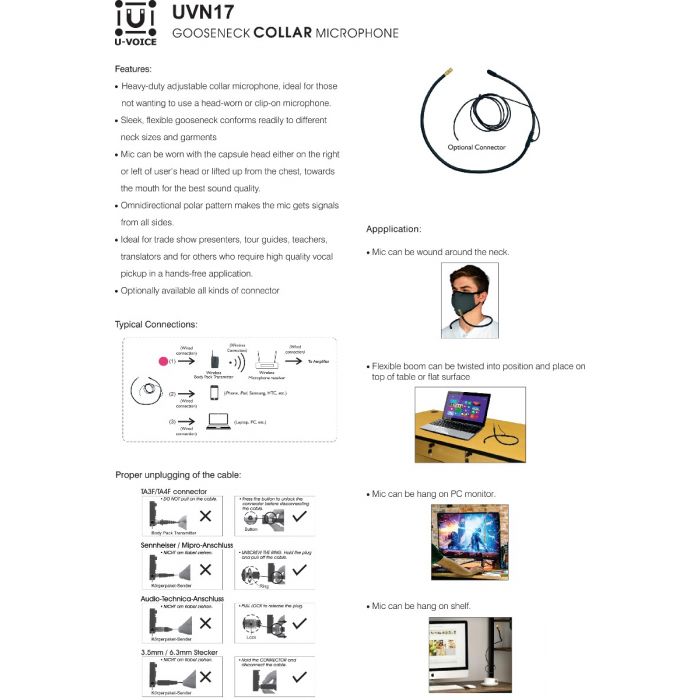 • Heavy Duty adjustable collar microphone, ideal use for those not wanting to use the head-worn mic.