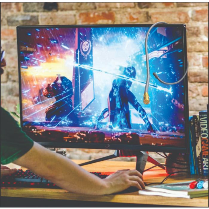 • The flexible boom can be twisted into position and place on top of any flat surface, hang on your PC monitor or hand on shelf.