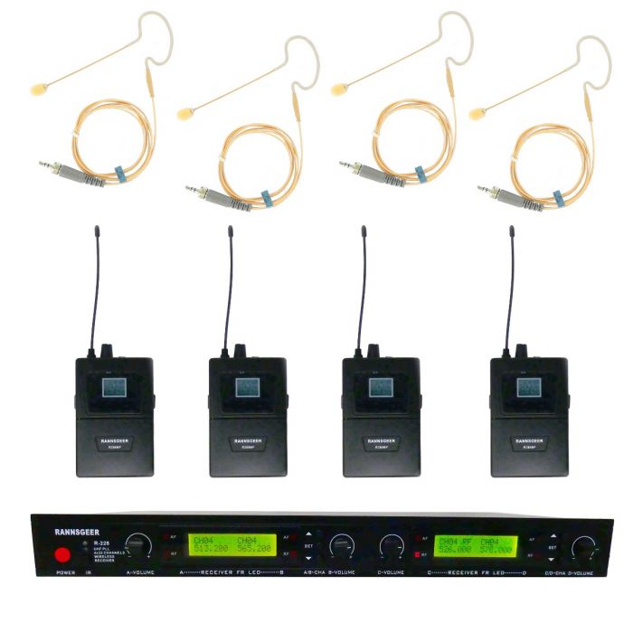 Rannsgeer UHF R288-630KD 4-Channel Kid Tan Color Mini Headset Wireless Microphone for Kids